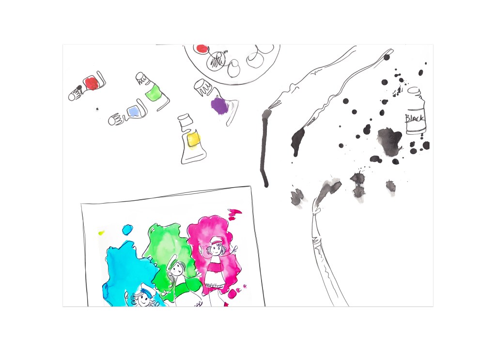 I seem to now favour a technique of using water-based mediums such as watercolour and ink, scanning and editing digitally. I tried to match my techniques that I felt suited the projects and mood, I have started to try even more new things such as creating “pop ups”.